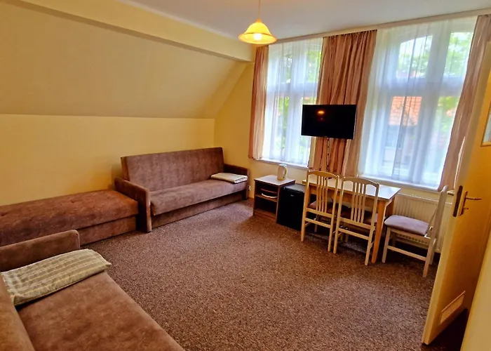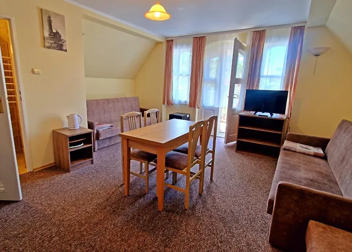 Willa zapewnia kuchnię z czajnikami elektrycznymi, lodówką i przyborami kuchennymi. Do dyspozycji Gości są urządzenie do parzenia kawy/herbaty. Obiekt jest usytuowany zaledwie o krok od restauracji Strzechówka z daniami kuchni europejskiej. Najbliższe lotnisko to Gdańsk im. Lecha Wałęsy, położone w 95 km od obiektu.